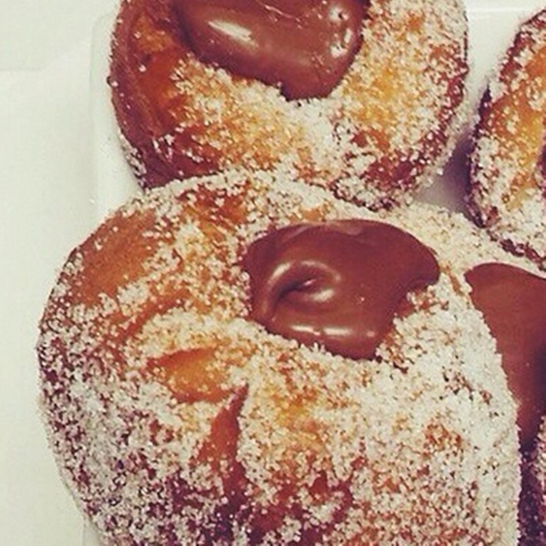 Bomboloni (beignets filled with nutella and strawberry coulis)