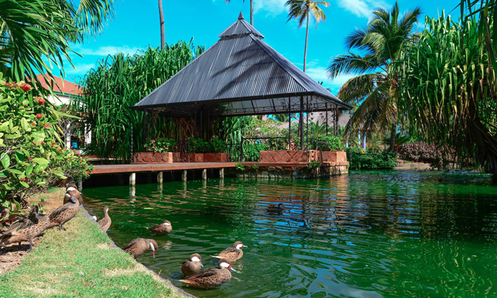 Each room of the 4-star resort includes a very large bed or two full beds, a full private bathroom with a shower, a satellite TV, a mini-bar and a balcony or terrace with a view on the garden. To freshen up, vacationers can use their room’s air-conditioning or fan.