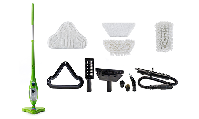 The H2O X5 is a 5-in-1 steam cleaner. Its disinfecting system features adjustable and continuous steam flow and a variety of heads and accessories to clean floors, hard-to-reach places, windows and carpets, and even to refresh winkled clothes.