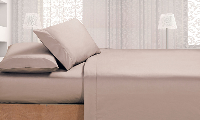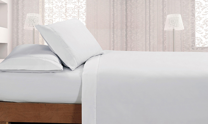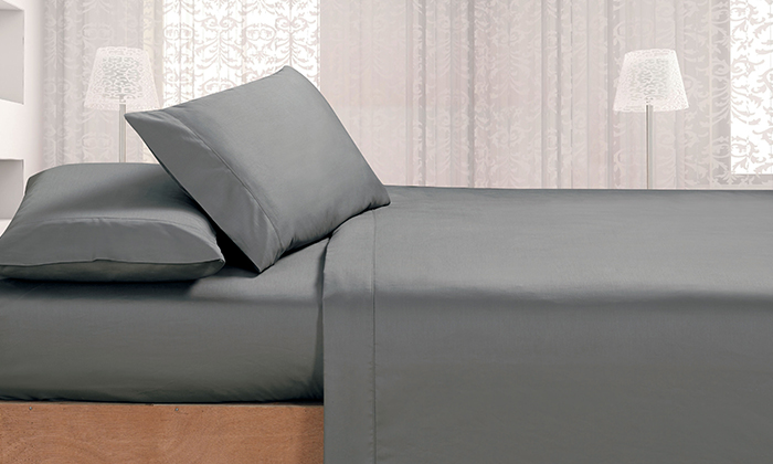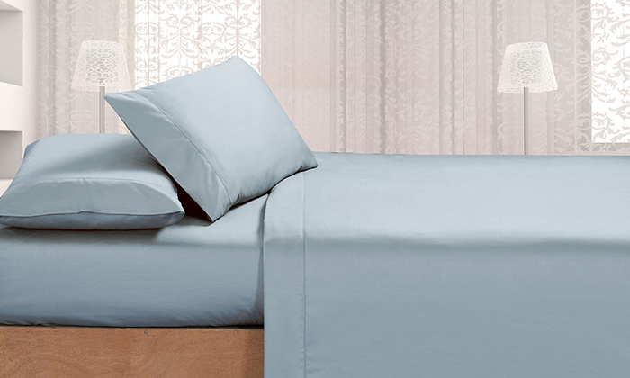 The set includes a fitted sheet, a flat sheet and two pillowcases. With a 900-thread count, the thick and silky fabric is resistant to wear that occurs after washes. The fitted sheet adapts to mattresses up to 16 inches thick. The solid colors are easily integrated to the deco of bedrooms, whether they are country-style or minimalist.